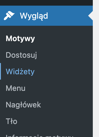 Teraz możemy jeszcze odrobinę zmodyfikować wygląd naszego bloga. Jeżeli wybrany motyw obsługuje tzw. widżety, czyli rzeczy wyświetlane najczęściej w bocznym pasku – możemy dodawać nowe lub usuwać niepotrzebne.
