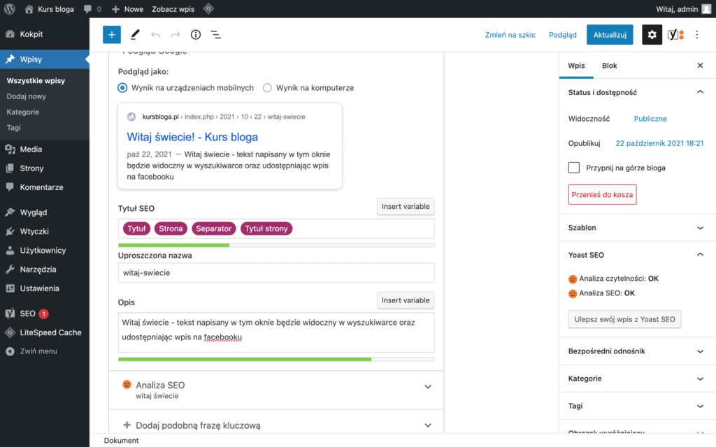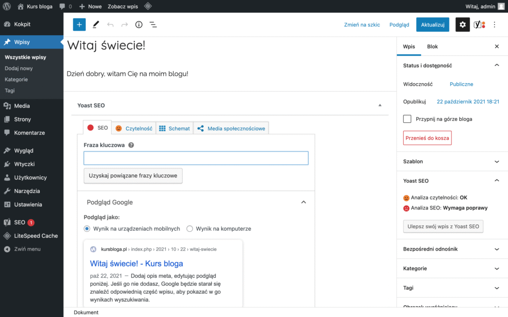 Na koniec chciałbym pokazać Ci jeszcze jak możesz wykorzystać wtyczkę Yoast SEO i mechanizmy WordPressa, w celu lepszego wyglądu i pozycjonowania wpisów.