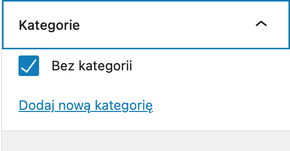 W menu po prawej stronie natomiast możesz ustawić między innymi kategorie wpisu (Jeżeli jeszcze żadnej nie masz, możesz dodać nową).